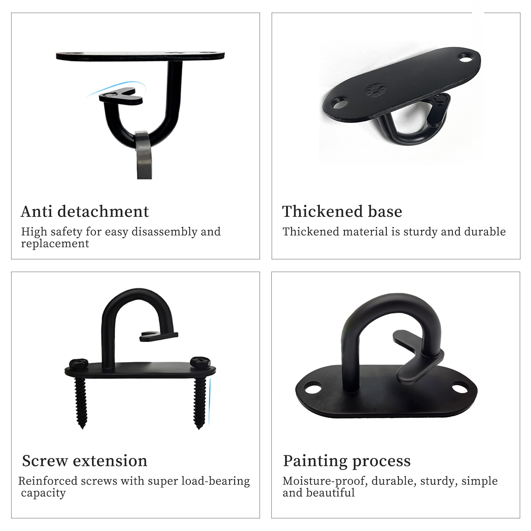 5.5. Easy to install: This metal wall-mounted hook is perfect for resistance bands and strength training. Also suitable for home gym, strength training, stretching equipment, physiotherapy, yoga swing, air silk, gymnastics rings, boxing equipment, combat rope.